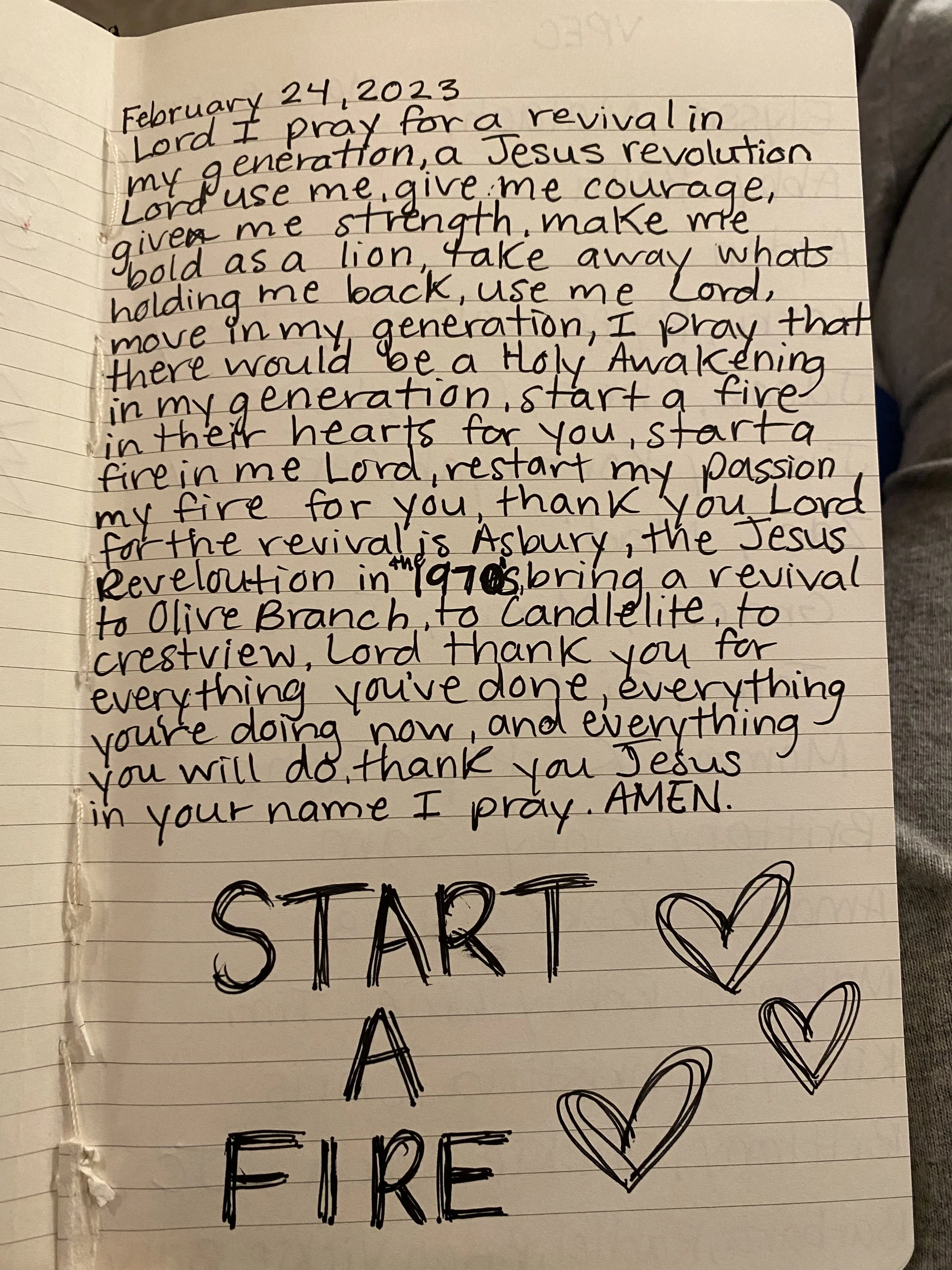 Jesus takes our struggles and chaos, and by the power of His love, He turns chaos into victory. His victorious love casts out fear. And it is His desire to make our love His love, that we would relentlessly, faithfully, joyfully pursue Him. His shout of love, His victorious love, is a fire! Religion is no substitute for His love. Lukewarm shall never satisfy. More love, Lord! Set us on fire!The fire of God’s love makes us bold to reach for things beyond our grasp. As we step out into the unknown, His fire spreads. Nothing and no one can stop it. God IS love. His fire refines and purifies, but it also gives joy unspeakable, full of glory. Nothing compares! And yes, we are all made for this. We are made for Him. We are made to have unquenchable fire!In this first quarter of the new year, 2023, we are seeing the hand of God move in powerful ways. Recently we took 25 students and adults to see the movie, Jesus Revolution. We watched the historical reality of literally thousands of hippies and young people becoming followers of Jesus during the 70s. They turned from drugs to faith in Jesus. And as these young people believed and were baptized, they became a radically sold-out generation of disciples.